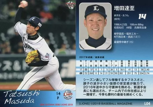 Japanese title: BBM/レギュラーカード/BBM2018 埼玉西武ライオンズ L04[レギュラーカード]:増田達至