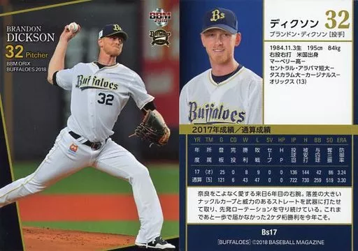 Japanese title: BBM/レギュラーカード/BBM2018 オリックス・バファローズ Bs17[レギュラーカード]:ディクソン