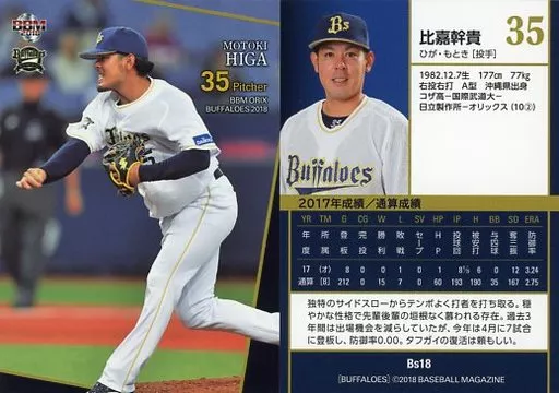 Japanese title: BBM/レギュラーカード/BBM2018 オリックス・バファローズ Bs18[レギュラーカード]:比嘉幹貴