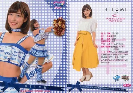 Japanese title: BBM/レギュラーカード/-/チアドラゴンズ2018/BBM2018 プロ野球チアリーダーカード DANCING HEROINE -華- 華80[レギュラーカード]:HITOMI