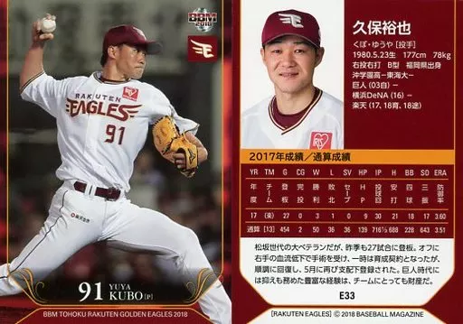 Japanese title: BBM/レギュラーカード/BBM2018 東北楽天ゴールデンイーグルス E33[レギュラーカード]:久保裕也