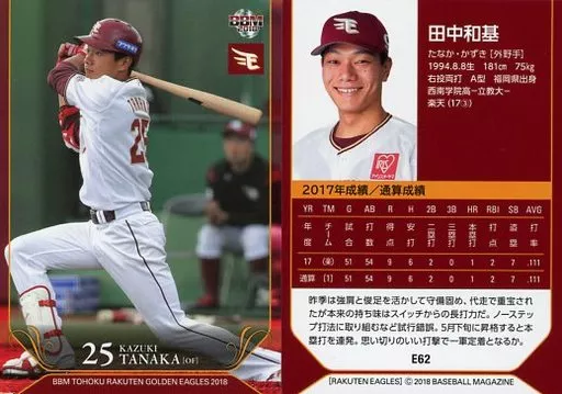 Japanese title: BBM/レギュラーカード/BBM2018 東北楽天ゴールデンイーグルス E62[レギュラーカード]:田中和基