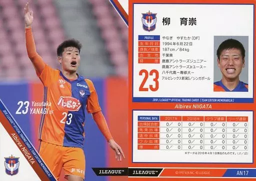 Japanese title: スポーツ/レギュラーカード/2018Jリーグオフィシャルトレーディングカード[チームエディション・メモラビリア]アルビレックス新潟 AN17 [レギュラーカード] : 柳育崇