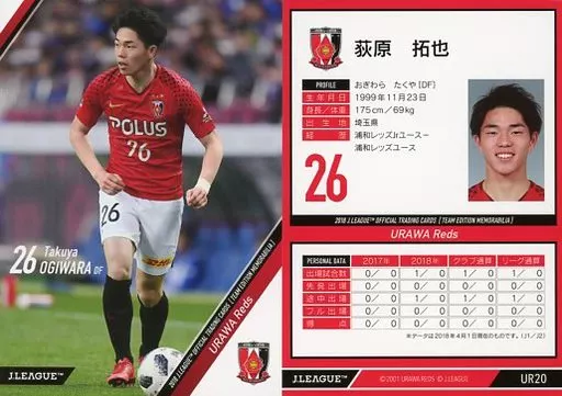 Japanese title: スポーツ/レギュラーカード/2018Jリーグオフィシャルトレーディングカード[チームエディション・メモラビリア]浦和レッズ UR20 [レギュラーカード] : 荻原拓也