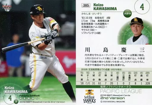 BBM / Regular Card / Fukuoka Soft Bank Hawks / BBM2018 Baseball Card 2 nd Version 385 [Regular Card] : Keizo Kawashima
