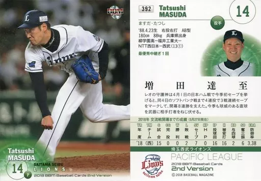 BBM / Regular Card / Saitama Seibu Lions / BBM2018 Baseball Card 2 nd Version 392 [Regular Card] : Tatsuji Masuda