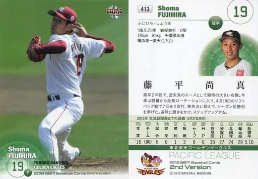 Japanese title: BBM/レギュラーカード/東北楽天ゴールデンイーグルス/BBM2018 ベースボールカード 2ndバージョン 413 [レギュラーカード] : 藤平尚真