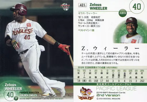 Japanese title: BBM/レギュラーカード/東北楽天ゴールデンイーグルス/BBM2018 ベースボールカード 2ndバージョン 421 [レギュラーカード] : Z.ウィーラー