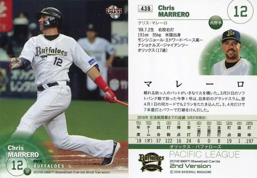 BBM / Regular Card / Orix Buffaloes / BBM2018 Baseball Card 2 nd Version 439 [Regular Card] : Marlro