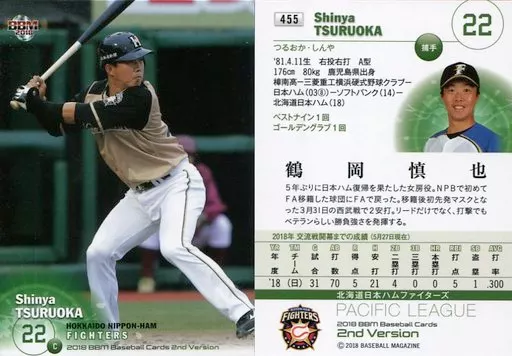 Japanese title: BBM/レギュラーカード/北海道日本ハムファイターズ/BBM2018 ベースボールカード 2ndバージョン 455 [レギュラーカード] : 鶴岡慎也