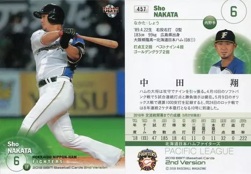 BBM / Regular Card / Hokkaido Nippon-Ham Fighters / BBM2018 Baseball Card 2 nd Version 457 [Regular Card] : Sho Nakata