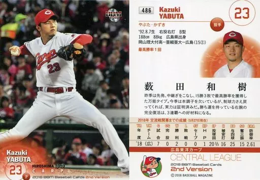 BBM / Regular Card / Hiroshima Toyo Carp / BBM2018 Baseball Card 2 nd Version 486 [Regular Card] : Kazuki Yabuta
