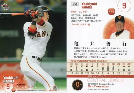 Japanese title: BBM/レギュラーカード/読売ジャイアンツ/BBM2018 ベースボールカード 2ndバージョン 552 [レギュラーカード] : 亀井善行