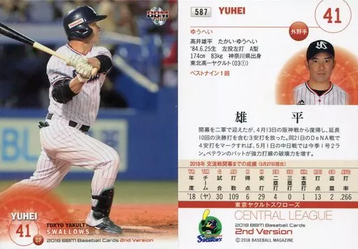 Japanese title: BBM/レギュラーカード/東京ヤクルトスワローズ/BBM2018 ベースボールカード 2ndバージョン 587 [レギュラーカード] : 雄平