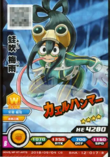 Japanese title: 僕のヒーローアカデミア激突!ヒーローズバトル/R/バトルカード/PU4弾 BHA-12-017[R]:蛙吹梅雨