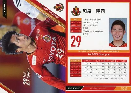 Japanese title: スポーツ/レギュラーカード/2018Jリーグオフィシャルトレーディングカード[チームエディション・メモラビリア]名古屋グランパス NG22 [レギュラーカード] : 和泉竜司