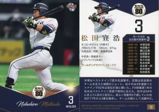 Japanese title: BBM/レギュラーカード/BBM2018 ホークス80周年ベースボールカード Celebration 12 [レギュラーカード] : 松田宣浩