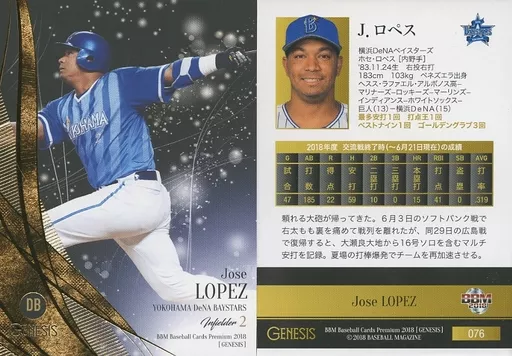 Japanese title: BBM/レギュラーカード/横浜DeNAベイスターズ/BBM2018 ジェネシス 076 [レギュラーカード] : J.ロペス