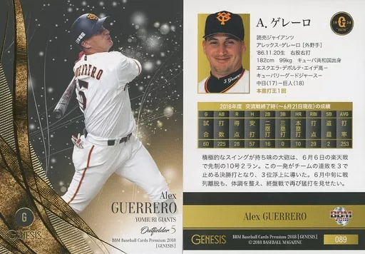 Japanese title: BBM/レギュラーカード/読売ジャイアンツ/BBM2018 ジェネシス 089 [レギュラーカード] : A.ゲレーロ