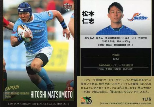 Japanese title: BBM/レギュラーカード/キャプテン/豊田自動繊機シャトルズ/BBM2018 ジャパンラグビー トップリーグ2018-2019 TL16 [レギュラーカード] : 松本仁志