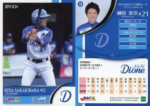 Sports / Regular Card / Aichi Dione / 2018 Japan Women's Professional Baseball League Official Card 16 [Regular Card] : Rina Sakakibara