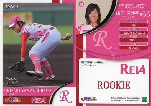 Japanese title: スポーツ/レギュラーカード/レイア/2018 日本女子プロ野球リーグ オフィシャルカード 73 [レギュラーカード] : 山口千沙季