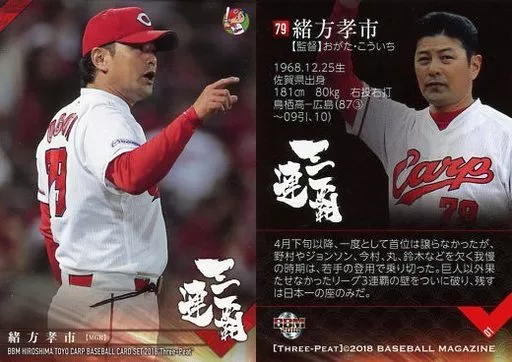 Japanese title: BBM/レギュラーカード/BBM2018 広島東洋カープ セ・リーグ優勝記念カードセット 三連覇 01 [レギュラーカード] : 緒方孝市