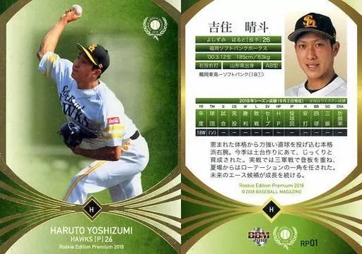 Japanese title: BBM/レギュラーカード/福岡ソフトバンクホークス/BBM2018 ルーキーエディション プレミアム RP01 [レギュラーカード] : 吉住晴斗