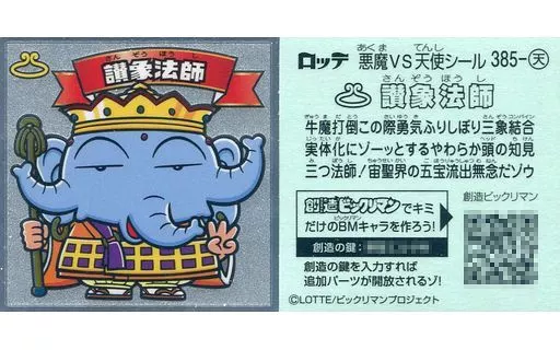 Japanese title: ビックリマンシール/メタルエンボス/悪魔VS天使 第33弾 385-天[メタルエンボス]:讃象法師