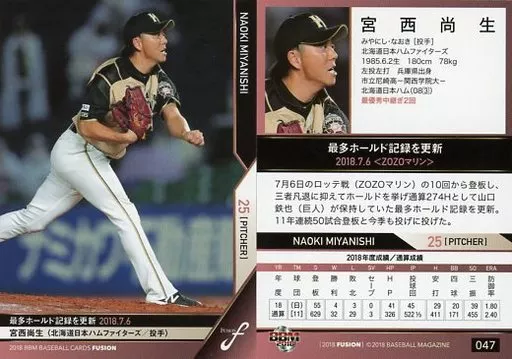 BBM / Regular Card / Recording Hall of Fame / Hokkaido Nippon-Ham Fighters / BBM2018 FUSION 047 [Regular Card] : Naoo Miyanishi