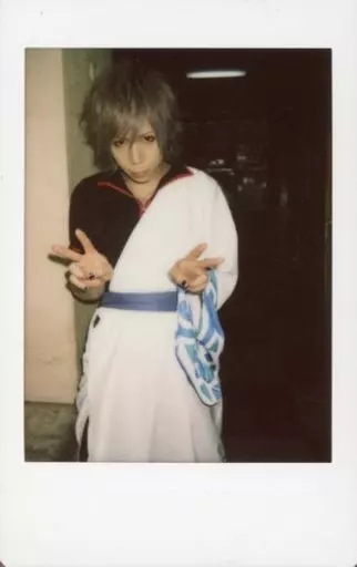 Japanese title: 生写真(男性)/ヴィジュアル系バンド KAJI/膝上・衣装黒赤白青・両手ピース・体正面/生チェキ
