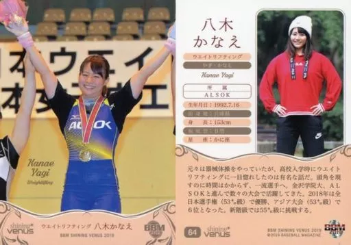 Japanese title: BBM/レギュラーカード/ウエイトリフティング/BBM2019 シャイニングヴィーナス 64 [レギュラーカード] : 八木かなえ