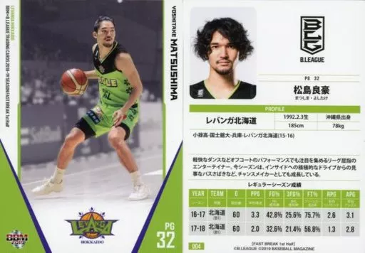 BBM / Regular Card / Levanga Hokkaido / BBM2019 b. LEAGUE TRADING CARDS 2018-19 SEASON FAST BREAK 1 st Half 004 [Regular Card] : Ryogo Matsushima
