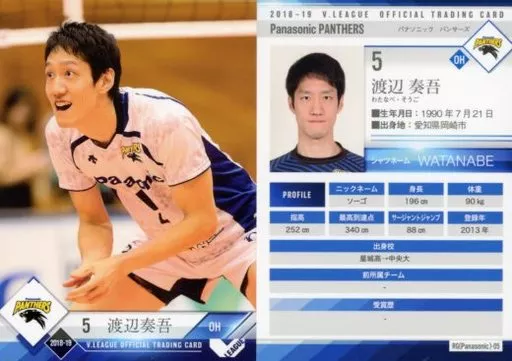 Japanese title: スポーツ/レギュラーカード/2018-19 V・LEAGUE男子公式トレーディングカード RG(Panasonic)-05 [レギュラーカード] : 渡辺奏吾