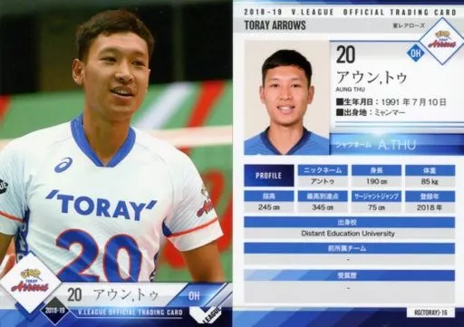 Japanese title: スポーツ/レギュラーカード/2018-19 V・LEAGUE男子公式トレーディングカード RG(TORAY)-16 [レギュラーカード] : アウン・トゥ