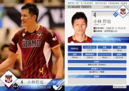 Japanese title: スポーツ/レギュラーカード/2018-19 V・LEAGUE男子公式トレーディングカード RG(VC.NAGANO)-03 [レギュラーカード] : 小林哲也