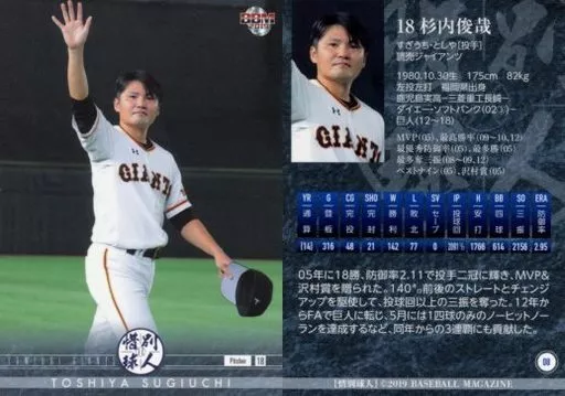 Japanese title: BBM/レギュラーカード/読売ジャイアンツ/BBM2019 惜別球人 08 [レギュラーカード] : 杉内俊哉