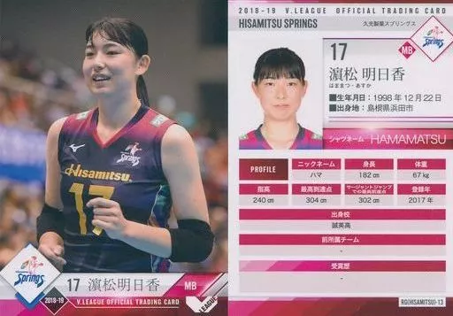 Japanese title: スポーツ/レギュラーカード/-/2018-19 V・LEAGUE女子公式トレーディングカード RG(HISAMITSU)-13 [レギュラーカード] : 濱松明日香