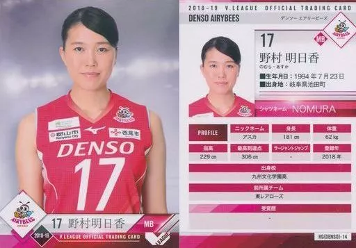Japanese title: スポーツ/レギュラーカード/-/2018-19 V・LEAGUE女子公式トレーディングカード RG(DENSO)-14 [レギュラーカード] : 野村明日香