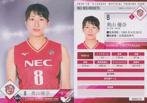 Japanese title: スポーツ/レギュラーカード/-/2018-19 V・LEAGUE女子公式トレーディングカード RG(NEC)-08 [レギュラーカード] : 奥山優奈