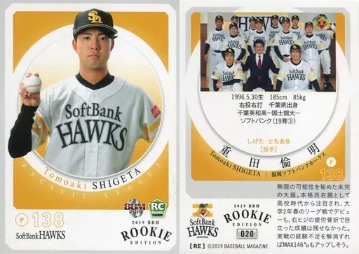 BBM / Regular Card / Fukuoka Soft Bank Hawks / BBM2019 RookIe Edition 020 [Regular Card] : Michiaki Shigeta