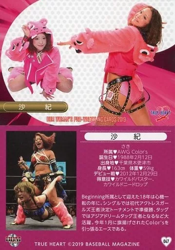 Japanese title: BBM/レギュラーカード/BBM 女子プロレスカード2019 TRUE HEART 047 [レギュラーカード] : 沙紀