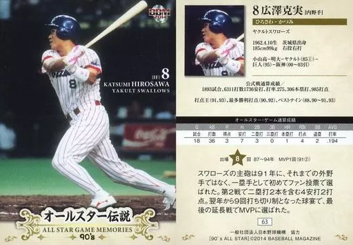 Japanese title: BBM/レギュラーカード/ヤクルトスワローズ/BBM2014 オールスター伝説90’s 63 [レギュラーカード] : 広澤克実
