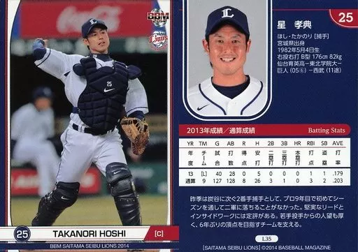 Japanese title: BBM/レギュラーカード/埼玉西武ライオンズ/BBM2014 埼玉西武ライオンズ L35 [レギュラーカード] : 星孝典