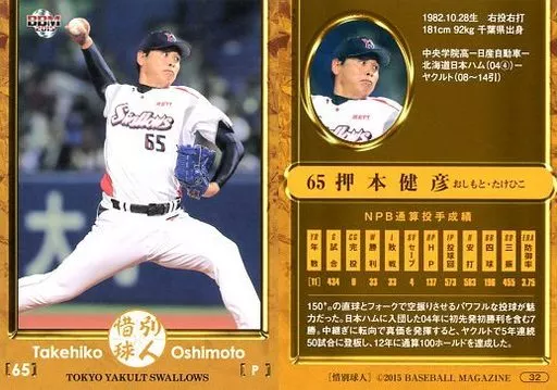 Japanese title: BBM/レギュラーカード/東京ヤクルトスワローズ/BBM2015 惜別球人 32 [レギュラーカード] : 押本健彦