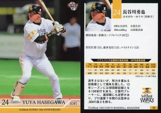 Japanese title: BBM/レギュラーカード/現役/BBM2015 福岡ソフトバンクホークス10周年カード 71 [レギュラーカード] : 長谷川勇也