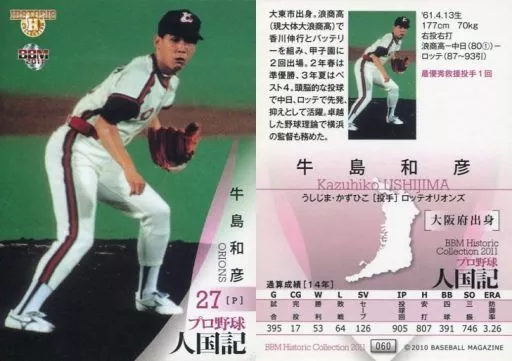 BBM / Regular Card / OB / Chiba Lotte Marines / BBM2011 Historic Collection "Jinkoku Ki" Heroes By Prefecture "Retsuden" 060 [Regular Card] : Kazuhiko Ushinoshima