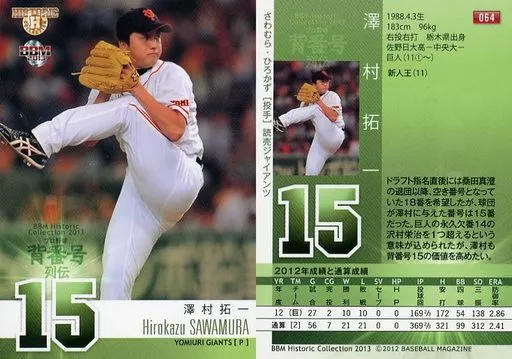 Japanese title: BBM/レギュラーカード/読売ジャイアンツ/BBM2013 ヒストリックコレクション「プロ野球背番号列伝」 064 [レギュラーカード] : 澤村拓一