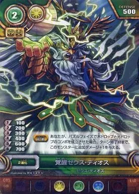 Japanese title: パズル&ドラゴンズTCG/UR/モンスター/木光/エクストラブースターパック第1弾 神護の城塞都市[PDE-01] E01-018[UR]:覚醒ゼウス・ディオス