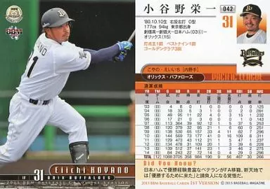 Japanese title: BBM/レギュラーカード/オリックス・バファローズ/BBM2015 ベースボールカード 1stバージョン 042 [レギュラーカード] : 小谷野栄一